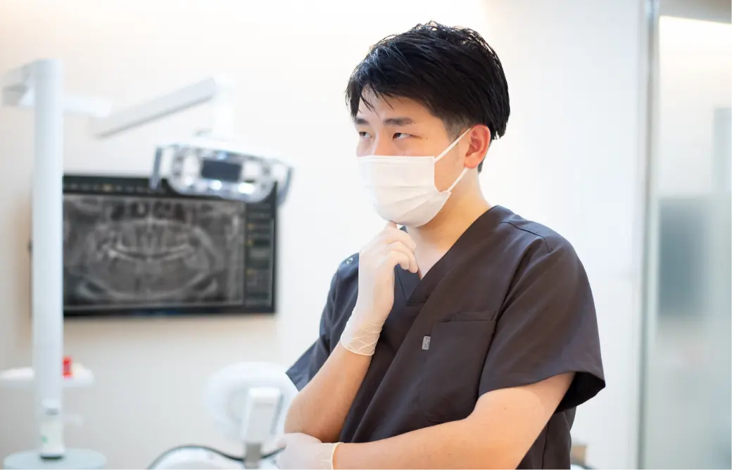 治療の選択肢を考える際に、できる限り保存を目指した治療方法を検討します。結果として抜歯が必要になる場合でも、なぜその判断に至ったのかを分かりやすくご説明し、納得したうえで治療を進めてまいります。